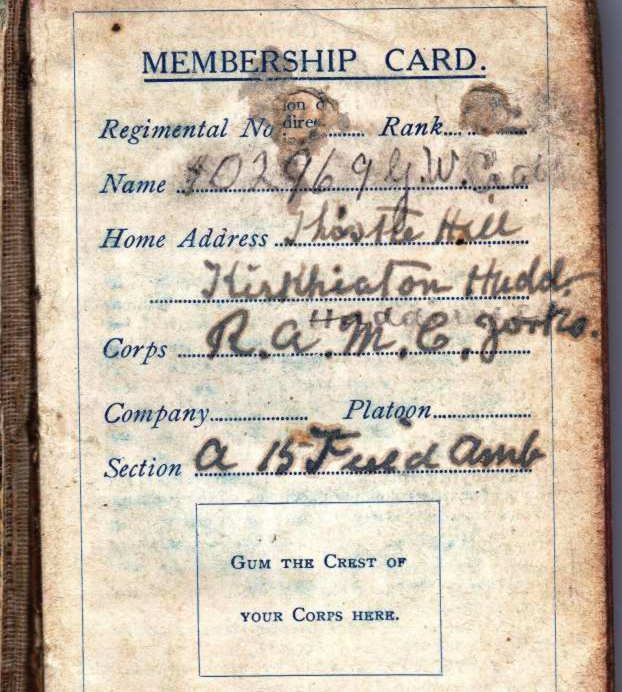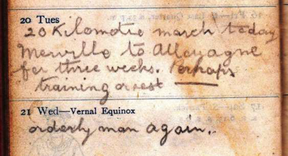 George was assigned to the regular army 15th Field Ambulance as a '(stretcher) bearer' and according to entries in his diary also took on the duties of 'orderly'. The 15th field ambulance, (not a vehicle, a mobile front line medical unit) was attached to the 15th Infantry Brigade, assigned to the 5th Division. The Field Ambulance was a mobile unit of the Royal Army Medical Corps. It was situated quite close behind the fighting front, and received wounded and sick men. Some had received rudimentary treatment at the front-line aid posts. George's role as bearer was extremely hazardous, many of his comrades were killed and injured on the battlefields as they removed the dead and injured whilst under enemy fire. More info on the WW1 Field Ambulance.
