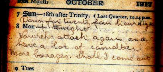 George kept a diary, a small 7 days to a view diary issued to army personnel in which he makes a number of notes and comments. The complete diary for 1917 is still intact and a few months of the 1918 diary survived too. A 'must-read'. All the entries are available for download, see below.