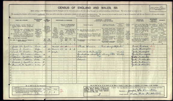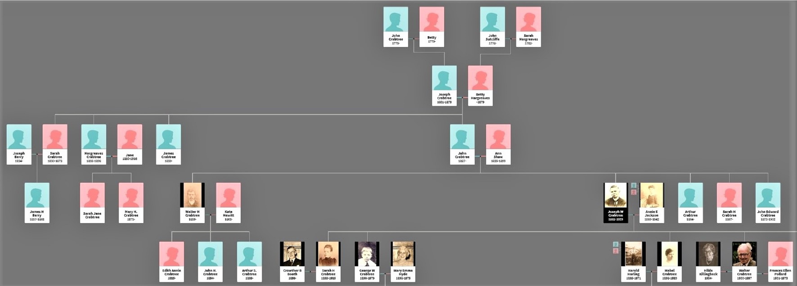 Joseph William was originally from Rochdale, Lancashire with a family background of textiles workers situated around the Lancashire - Yorkshire borders. His specific trade was 'mohair plush weaver' (velvet?).