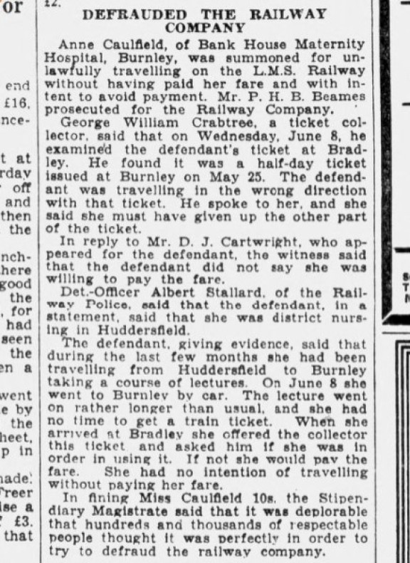 Gearge was obviously a ticket collector in 1938, reported on here catching a fare dodger. From Huddersfield Daily Examiner 1st Oct