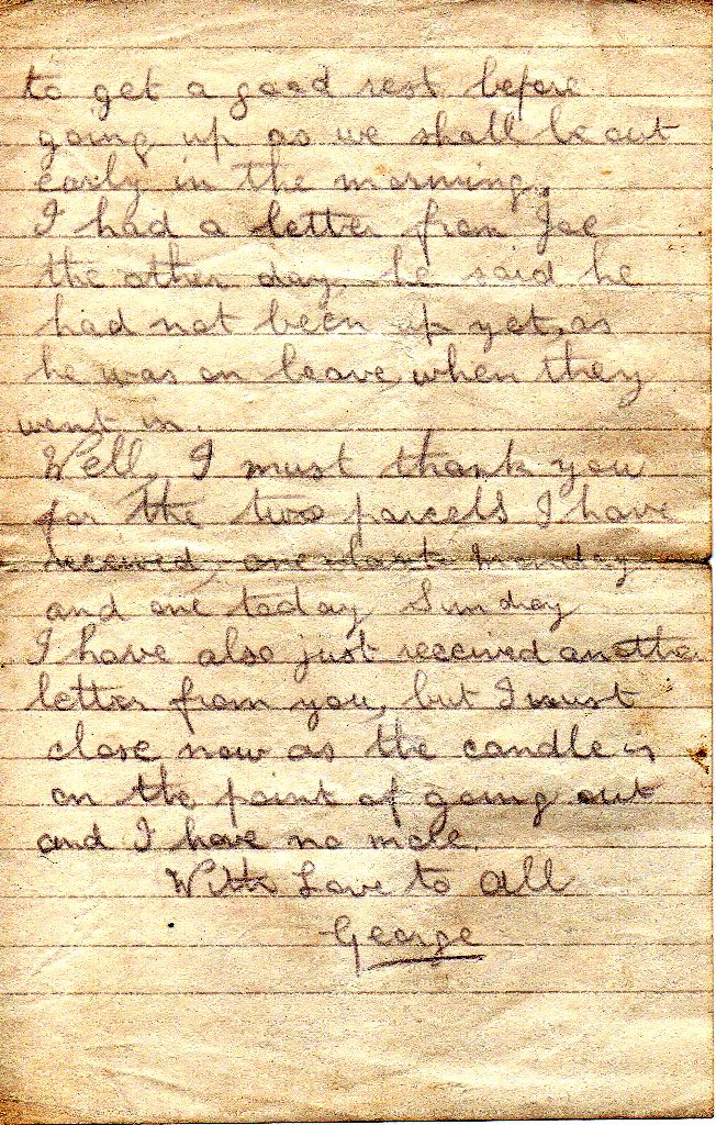 George was a bright and intelligent youngster but jobs were scarce and a defined career path was difficult. His occupation on the 1911 census was listed as 'bookstall messenger' for newsagents and when he joined the army he was a 'mule winder' in the mill. He also is known to have worked part-time in a butchers shop and in a bicycle repair shop at Waterloo.